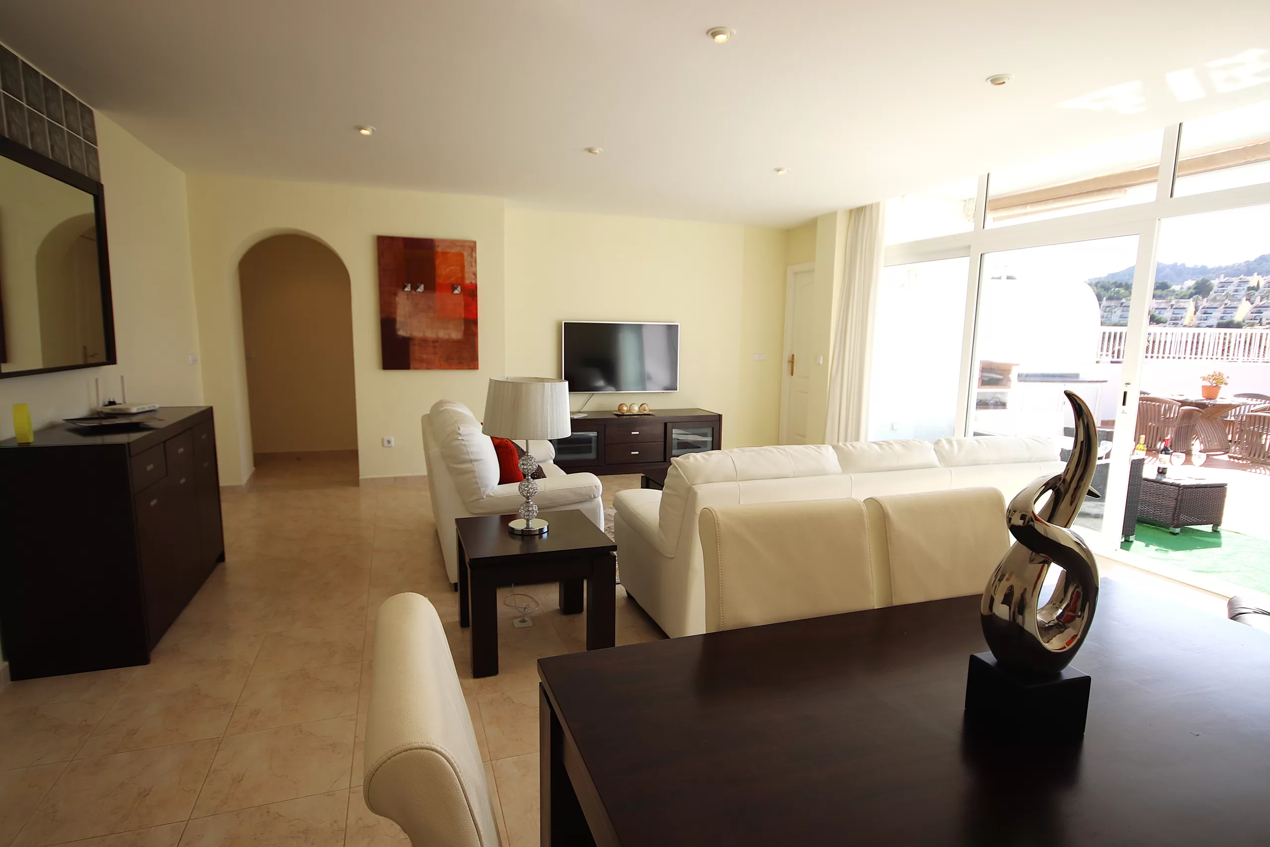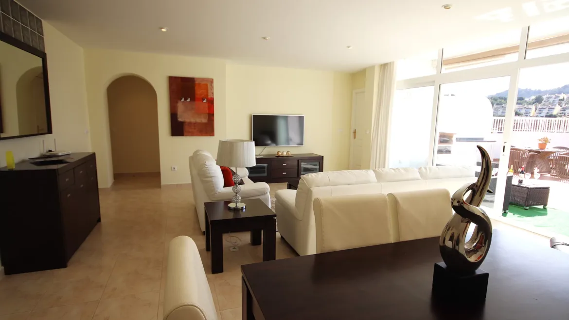 This immaculate Miradores apartment has the best orientation for all year round sunshine, and is particularly beneficial during the winter months. The generous terrace gives warmth and light all year through.