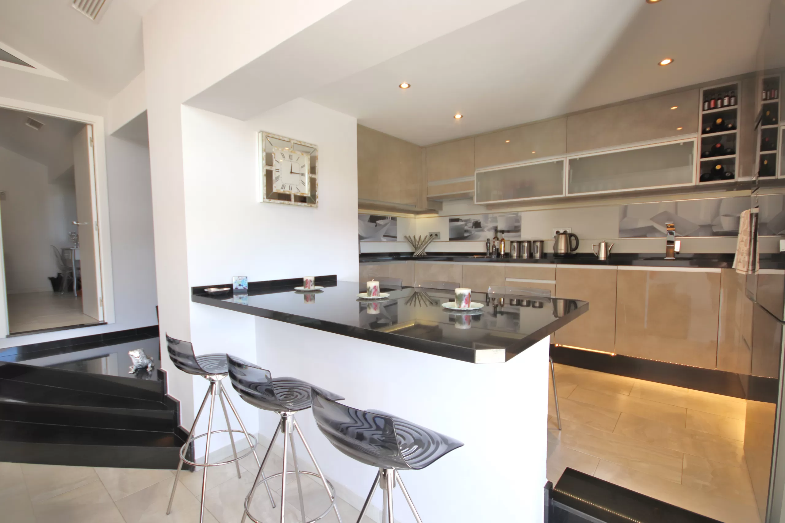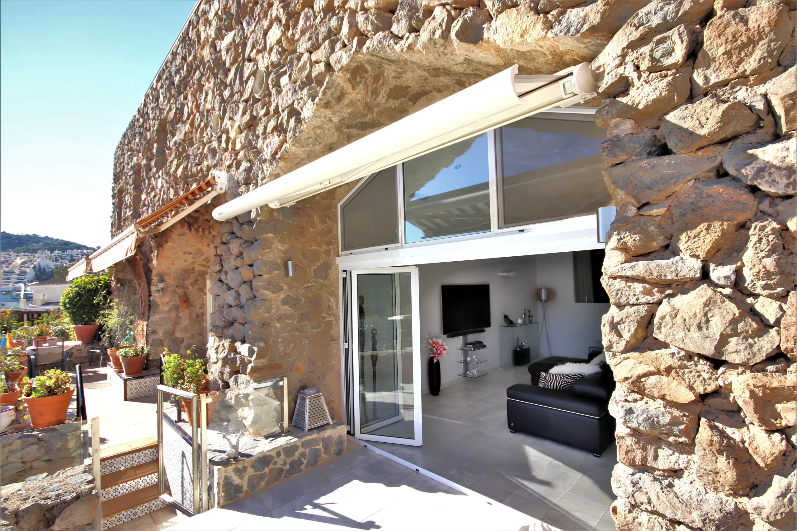 The lounge is open plan to the amazing kitchen and the private terrace area has lovely winter sunshine.